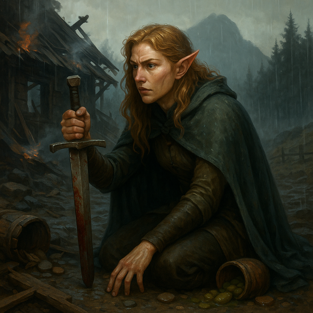 Hauling fresh timber and newly-won crowns upriver, the companions clash with disgraced dwarven miners in Grissenwald, uncover a goblin-ravaged farmstead, and follow a bloody trail toward Black Peak’s forsaken mine where darker truths await.